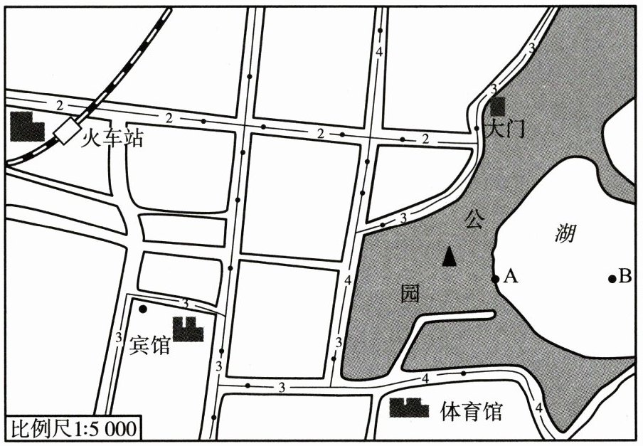 方向,量得火车站到宾馆的图上距离大约为 4 厘米,两者的实地距离约为200