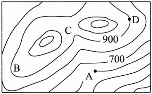 12. B(这里原解析有误,A点海拔700米,D点海拔900米,相对高度是900 - 700=200米,答案选B)