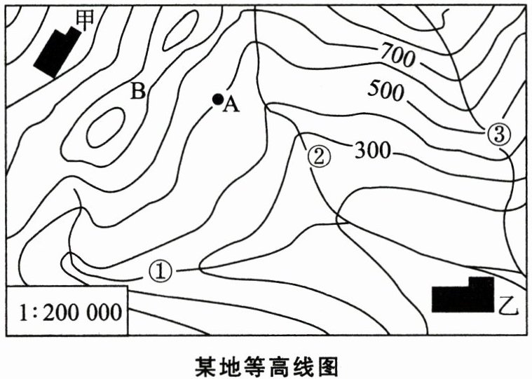 (3)③;③处等高线向海拔低处凸出,为山脊,山脊处不可能形成河流