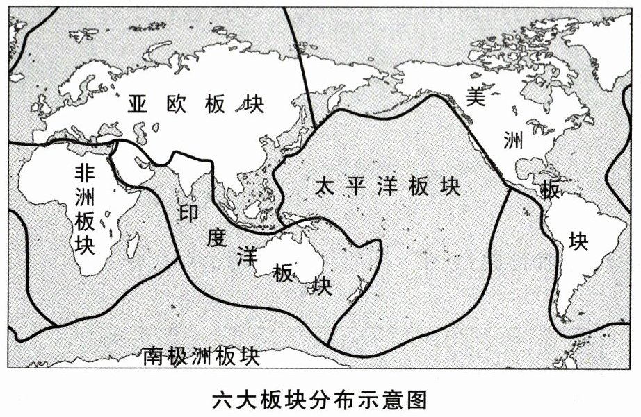 28. 读“六大板块分布示意图”,回答下列问题。(7 分)