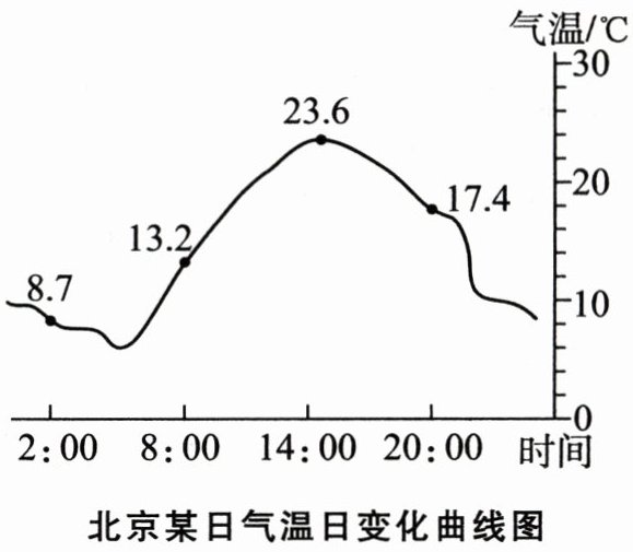 读“北京某日气温日变化曲线图”,回答4~5题。