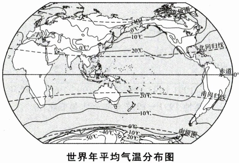 读“世界年平均气温分布图”,回答9~12题。