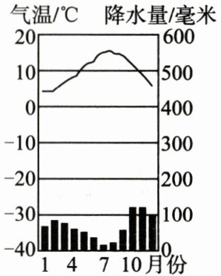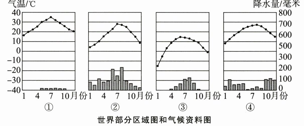 读“世界部分区域图和气候资料图”,回答21~22题。
