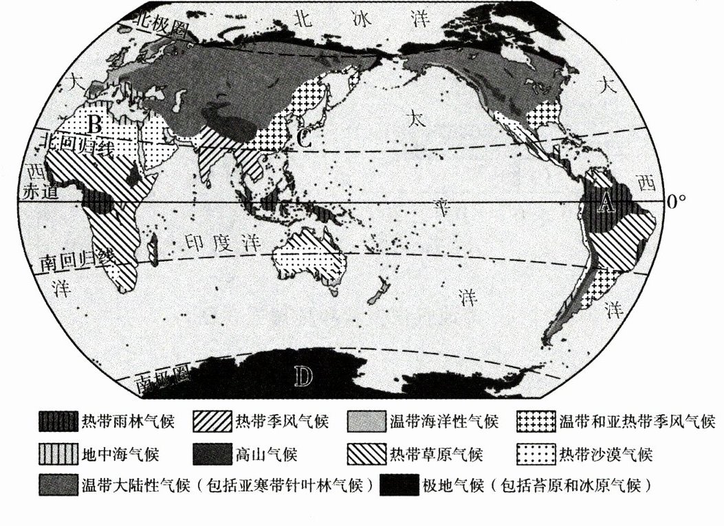 30. 读“世界气候类型的分布图”,回答下列问题。(10 分)