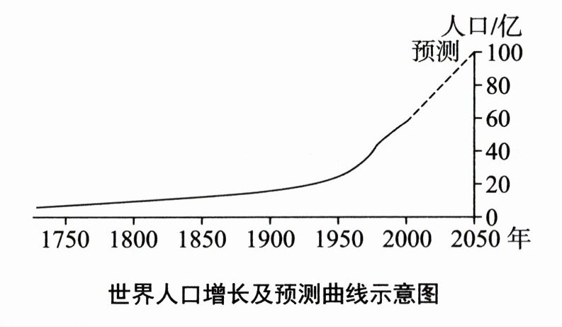 读“世界人口增长及预测曲线示意图”,回答4~5题。
