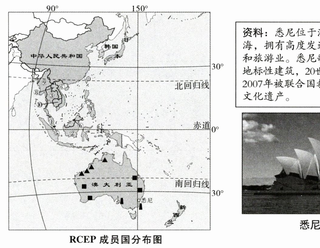 区域全面经济伙伴关系协定(RCEP)的成员国包括东盟十国(① 马来西亚、② 印度尼西亚、③ 泰国、④ 菲律宾、⑤ 新加坡、⑥ 文莱、⑦ 越南、⑧ 老挝、⑨ 缅甸和⑩柬埔寨)以及中国、日本、韩国、澳大利亚、新西兰15个国家。