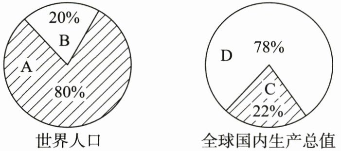 30. 读“某年发达国家和发展中国家人口和国内生产总值比较图”,回答下列问题。(4分)