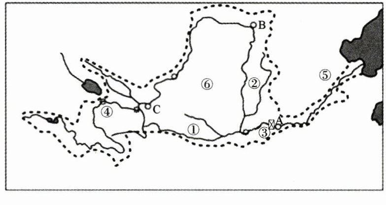 (1) 表示黄河中、下游分界点的 A 点的名称为