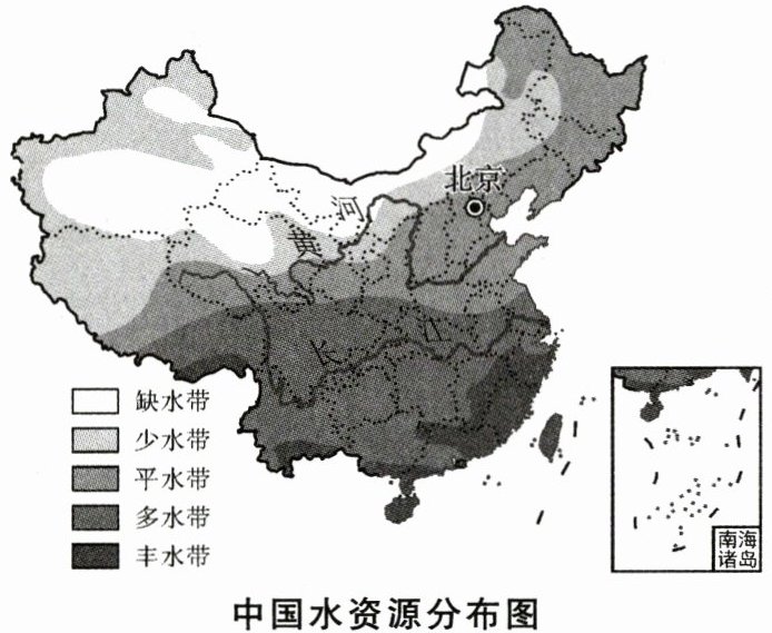 (1) 从图中可以看出,我国水资源的空间分布特点是