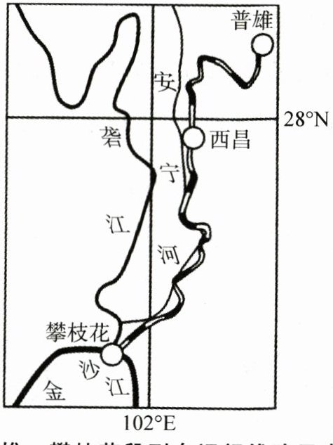 在大部分慢火车被高铁淘汰的时代,运行于成昆线上普雄—攀枝花段的一对慢火车,自1970年开通后保留至今。该对列车里程353千米,共停靠26个站,运行平均时速不超过40千米/时,几乎每10分钟停一站,票价最高25.5元,最低2元,至今25年未涨过价。下图为“普雄—攀枝花段列车运行线路示意图”。据此完成24~25题。