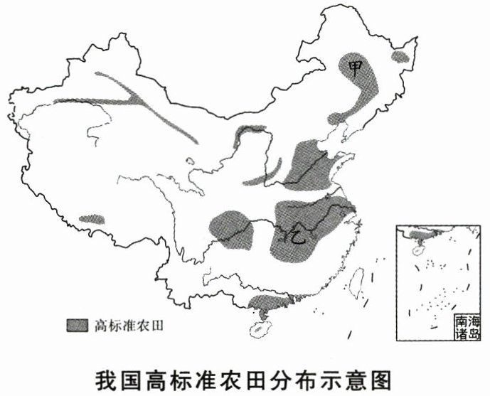 28. 读“我国高标准农田分布示意图”,回答下列问题。(10分)