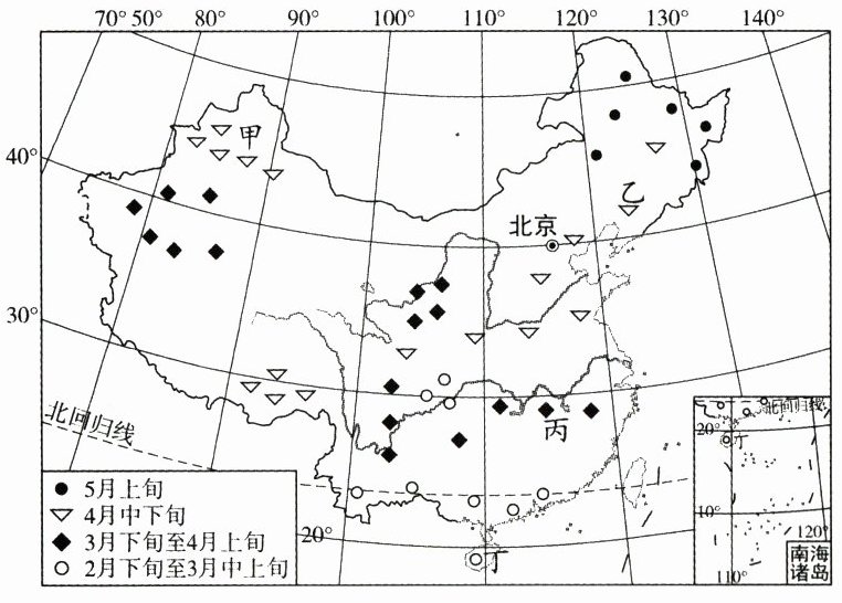 14. 导致乙、丙、丁三个地区春耕春播时间差异的主要影响因素是(