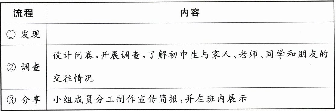 (3)“发现”内容:部分初中生在与家人、老师、同学和朋友的交往中存在困惑或需改进之处。排序:①②③