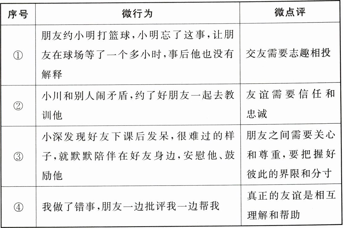 |①|朋友约小明打篮球,小明忘了这事,让朋友在球场等了一个多小时,事后他也没有解释|交友需要志趣相投|