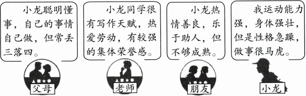 为了更好地认识自己,小龙翻开了自己的成长手册,看到了以下评价内容,请你和小龙一起分析。