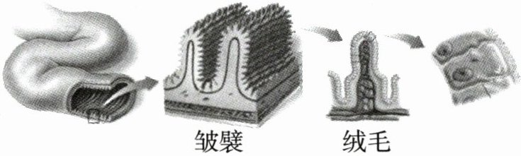 构成,有利于营养物质的吸收。(4)小肠中消化液种类多,