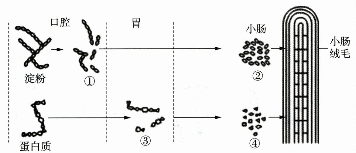 25. 下图是淀粉、蛋白质在人的口腔、胃、小肠中的消化和吸收过程示意图,其中表示氨基酸的是(
