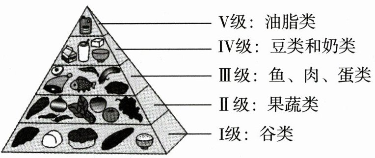 26. (6分)青少年正处在生长发育旺盛的时期,合理的营养膳食是保证身体正常生长发育的基础,中国营养学会提出的“居民均衡膳食宝塔”是合理膳食的依据。