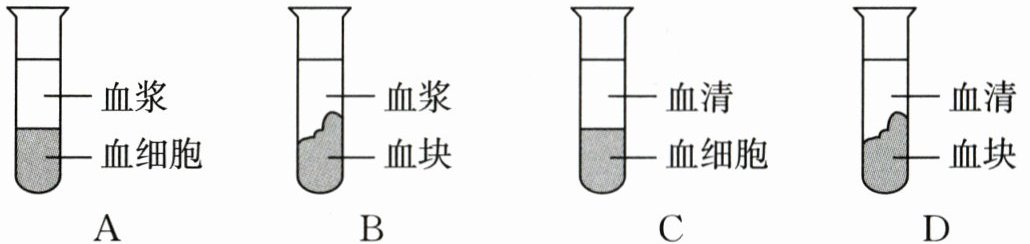 2. 在新鲜的鸡血液中加入少量抗凝剂后,血液会出现分层现象,下列图示中正确的是 (