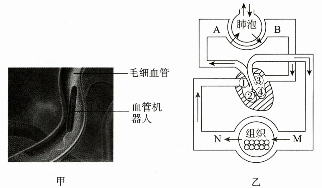(填一种瓣膜结构)的阻拦有关。(5) 血管机器人从M到达N时,周围血液成分中氧气和二氧化碳发生的变化是