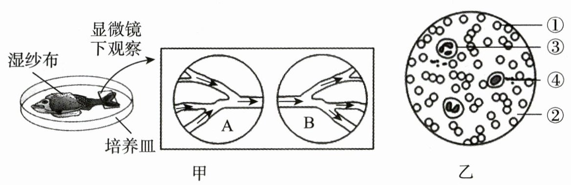 (2) 图甲中“→”表示血液流动方向,根据血流方向推断,A为