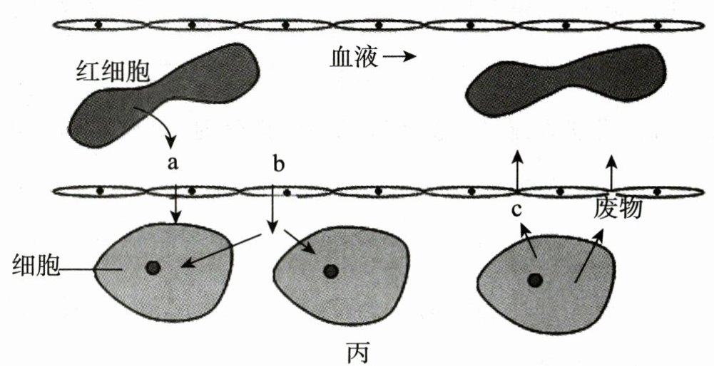 (填图乙中的序号并写名称)。(4) 图丙中,红细胞具备运输a氧的功能,血红蛋白与氧相结合的特点是