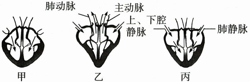 C.图丙中,心房和心室均舒张,血液经静脉流回心房