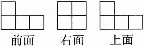 6. 一个物体是由若干个同样大小的小正方体拼成的。已知从前面、右面和上面看到的形状如下图,拼成这个物体至少用了(