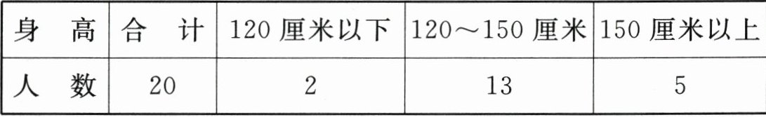 1. 铁路部门规定,儿童身高在120厘米以下乘火车免票,120~150厘米之间享受半价票,150厘米以上儿童需购买全价票。蓝天小学合唱队乘火车去外地演出,队员身高情况如下: