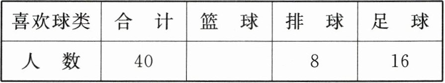 3. 下表是星光小学三(3)班40名同学喜欢的球类项目统计表(每人只能从中任选一种球类项目),根据表中数据可以推算出喜欢篮球的有(