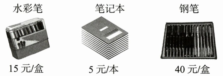 (1)买$4$本笔记本和$1$盒钢笔,一共要付多少元?