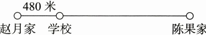 4. 陈果家到学校的路程比赵月家到学校的路程多$1800$米。赵月家和陈果家相距多少米?