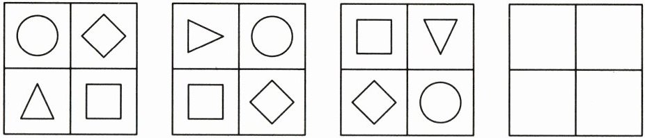 用$4$个同样大小的小正方形可以拼成像下图这样的轴对称图形。用$4$个这样的小正方形还可以拼成怎样的轴对称图形?在图中画一画,至少画出两种。
