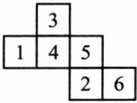 1. 如图,将右面的纸片折起来可以做成一个正方体。这个正方体的$6$号面的对面是(