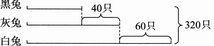 步骤四:计算黑兔只数不变,灰兔、白兔只数都变成与黑兔一样多时兔子的总数