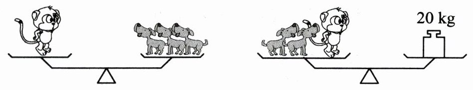 (1)设一只猴子重$x$千克,一只小狗重$y$千克。