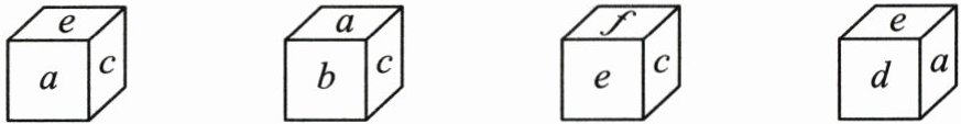 1. 一个正方体的六个面上分别写着字母 $ a $、$ b $、$ c $、$ d $、$ e $、$ f $,根据下列四种不同的摆法,判断 $ c $ 的对面是(