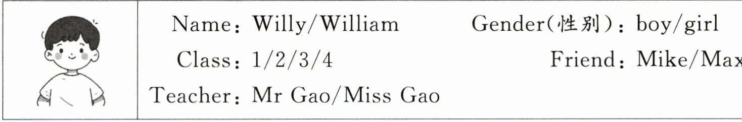 |Name:Willy/Williams|Gender(性别):boy/girl|