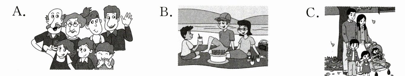 (方框:A. Yes. He's John. B. Good morning. C. This is my family. D. She's my sister,Jane. E. This is my mother,Mrs Monkey.)