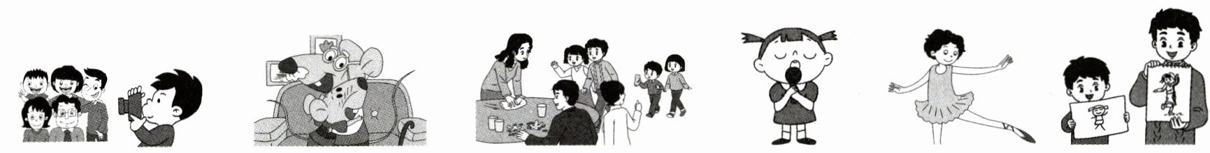 ( )7. A. draw a book B. get a cake C. make a cake