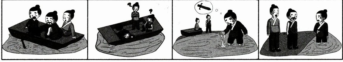 )People laughed,"Ha ha! The boat keeps going. How canyou get your sword at the same place?"