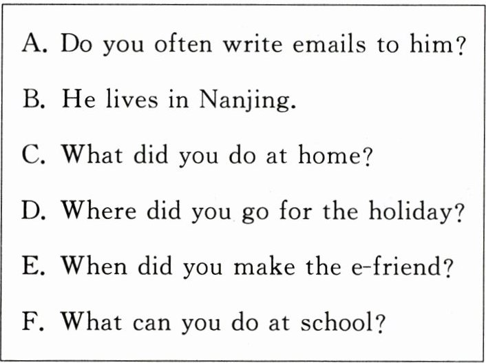 七、情景交际。(从方框中选择合适的选项完成对话,其中有一项是多余的)