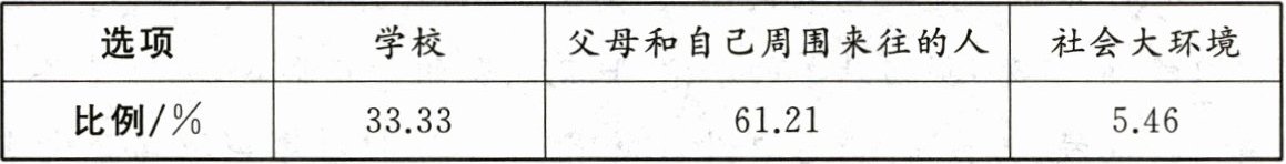(1)示例:某校超过九成的九年级学生认为家风对个人教养有影响,超过半数的九年级学生认为教养的形成取决于父母和自己周围来往的人。