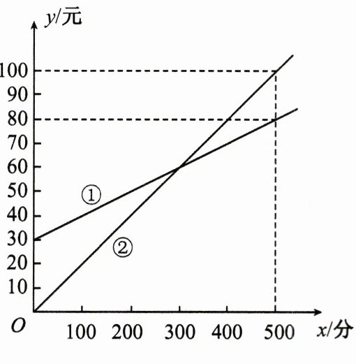 元;(2) 分别求出①②两种收费方式中费用 y 与通信时间 x 之间的函数关系式;