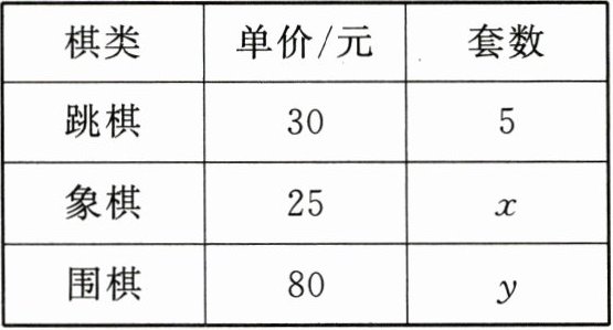 4. 某社区活动中心计划出资600元购买跳棋、象棋、围棋,进货情况见下表: