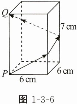 变式训练2 如图 1-3-6,已知一个长方体的底面是边长为 6 cm 的正方形,且这个长方体的高是 7 cm.若一只蚂蚁从点 P 开始爬行了 4 个侧面到达点 Q,则这只蚂蚁爬行的最短路程为