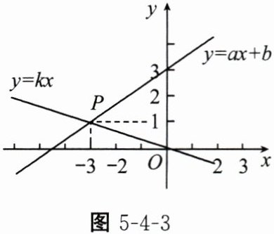 2. 如图5-4-3,已知函数 $y = ax + b$ 的图象和 $y = kx$ 的图象交于点 $P$. 根据图象可得,关于 $x$,$y$ 的二元一次方程组 $\begin{cases}y = ax + b,\\y = kx\end{cases} $ 的解是(