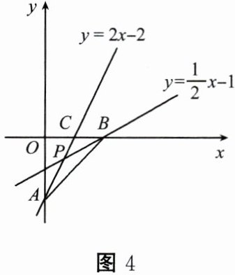 20. 如图4,一次函数$y = 2x - 2的图象与一次函数y= \frac{1}{2}x - 1的图象交于点P$;直线$y = 2x - 2与y轴交于点A$,与$x轴交于点C$;直线$y= \frac{1}{2}x - 1与x轴交于点B$. 求:]
