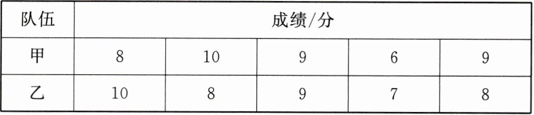 例 八(1)班组织了一次食品安全知识竞赛,甲、乙两队各 5 人的成绩(十分制)见下表。