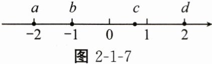 3. (2024·青岛中考)实数$a,b,c,d$在数轴上对应点的位置如图2-1-7,这四个实数中绝对值最小的是(